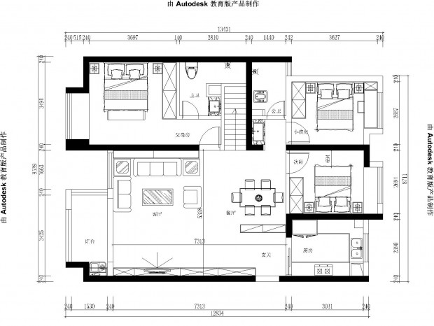 求助大神,凹型户型的设计方案