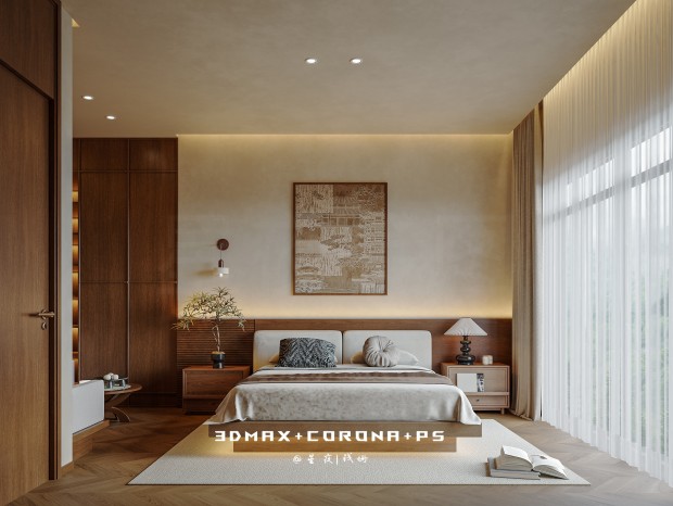 诧寂风卧室-魔方设计表现渲染