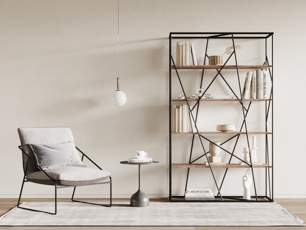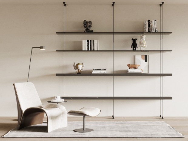 意大利Poliform现代客厅,组合沙发,茶几,单人休闲椅,金属落地灯,书籍,绿植,...