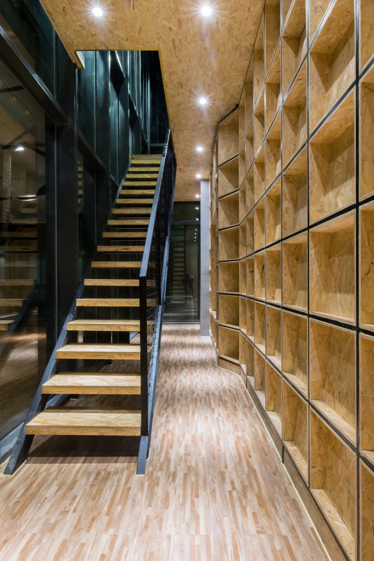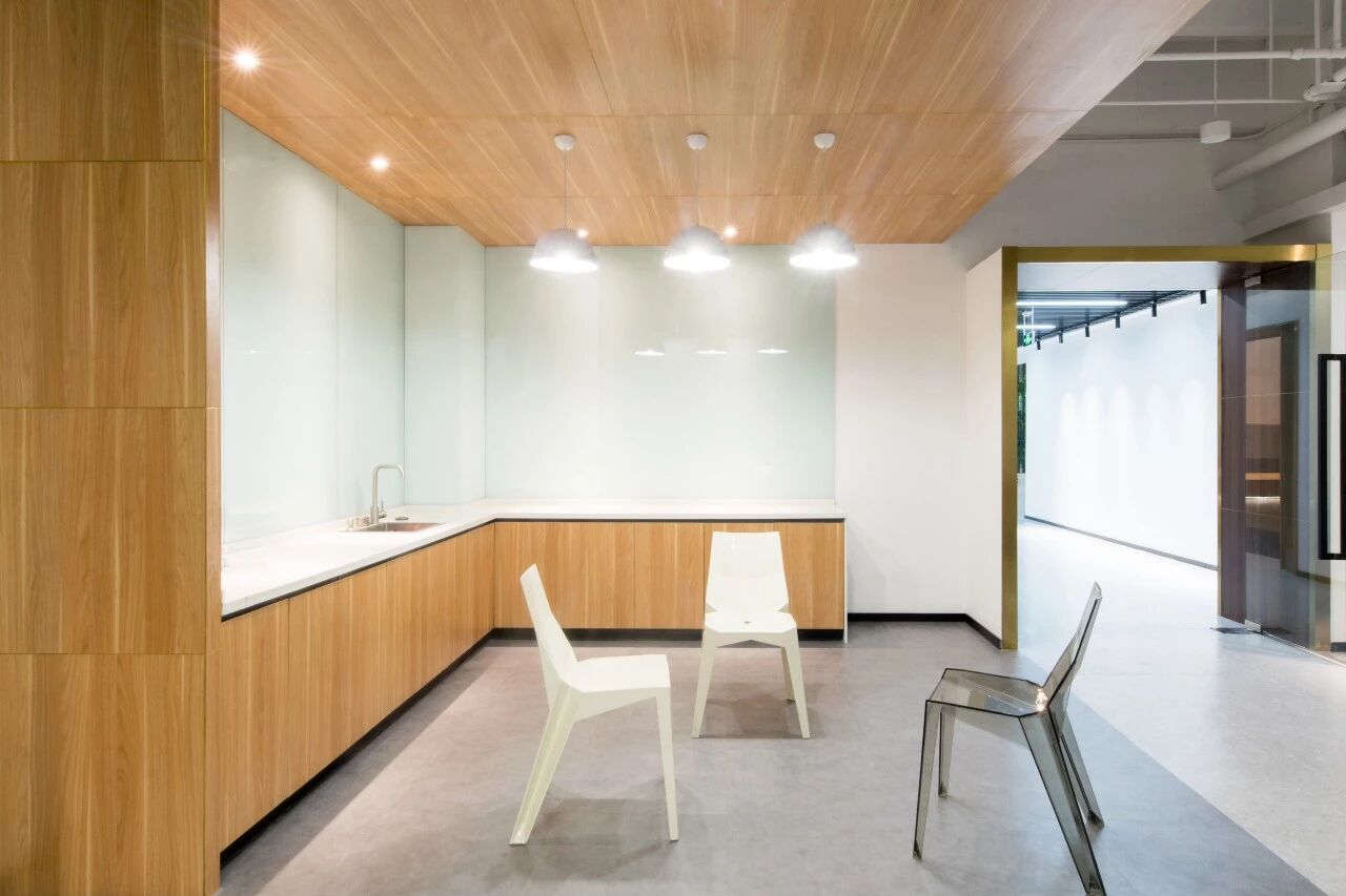 本帖最后由 锐DESIGN 于 2018-9-5 16:16 编辑 ) i& e% F0 Q" i" r : Z* q7 ]% D9 {& ] OMAHA互联网+医疗杭州办公总部坐落于杭州良渚文化村,总建筑面积1140㎡,在此之前原场地荒废已久。应业主的要求,寻常设计将原场地改造为集办公研发、会议报告、企业展示、接待休闲于一体的空间。寻常设计通过对材料、色彩的运用以及空间的把控,打造了一个现代、生态、开放的数字医疗研究院,整体围绕“低碳友好”的主旋律。 OMAHA office area is about 1140㎡, and is located in Liangzhu Culture Village, Hangzhou. The original site was abandoned for a long time before and now is a space integrating office R&D, conference report, enterprise display, and reception. The overall design revolves around the theme of “low carbon and friendliness”. Usual Studio tried to design a modern, ecological and open digital medical research institute office through the use of materials and colors and the control of space. ▽大厅入口 在“数字医疗科技”的空间主题下,空间改造设计如何整合场地优缺点,并且扬长避短,以较低的成本创造一个结合舒适友好的生态办公环境,是寻常设计在这个项目中不断思考和探索的。期间做出了许多有益的尝试,并以以下三个策略为设计原点,打开了该项目设计的视野。 Under the space theme of “Digital Medical Technology”, Usual Studio explored the way how spaces reformation realizes the advantages and disadvantages of the space so as to create a friendly and ecological office environment at a low cost. During the period, many useful attempts were made, and here are three strategies of the project design as follows. ▽大厅 7 M" P/ s$ x- Q( z. ]* }5 k: D9 { 7 w% W% X/ g5 Z* o3 N空间生态 Space ecology 由于原场地为半透的玻璃建筑,且大堂顶部有裸露的玻璃构成,为了优化场地的采光环境,在大堂顶部加设有垂直百叶,光线透过玻璃时,根据不同时间不同季节的光照角度形成不同长宽的条形阴影,以此调节室内采光,避免室内光线太强或者遮挡过多影响室内外景观的通透性。同时,将原有的隔间打通,用落地玻璃替代原有的墙结构,构成开放式的办公空间,并将自然光线延伸至室内。解决了场地进深大、内部接触不到自然光的问题,最大限度地利用了自然资源。 Since the original site is a semi-transparent glass building with exposed glass at the top of the lobby, shutters are added at the top of the lobby. When the light passes through the glass, shadows may be shaped according to the illumination angle at different times. In order to adjust the indoor lighting without blocking the outdoor landscape. At the same time, the original compartment was opened, and the wall structure was replaced by floor-to-ceiling glass to form an open office space and extend the natural light to the interior and make maximum use of natural resources. ▽大堂 ▽接待前台 ▽空间细部 ▽空间细部 办公空间被精细地分割开成多个区域,满足不同的办公需求 ,也降低了大面积连续性空间的能耗。入口处的二重门设计,防止室内外空气直接对流,节能保温,减少空调能耗。不仅提高了空间的使用效率,更强调了生态环境和资源的效益。7 y! `" |' q- v The office space was divided into areas to meet different office needs, and reduces the energy consumption of large space. The double door at the entrance is designed to energy saving and heat insulation. The designs not only improve the efficiency of space uses, but also emphasize the benefits of ecological environment and resources, and optimizes the office environment. ▽报告厅 ▽空间细部 空间共享 Space sharing 在开放办公区,装置的玻璃白板方便员工们随时记录创意想法,为办公区域增加趣味和活力;考虑到项目位置离市中心较远,为了方便员工们存放便当和饮料,咖啡休闲区内的冰箱,体现了办公环境的友好和关怀,从细节上提升了员工办公的舒适度;利用狭小空间发展出来的书吧,上下两层纵向地拓宽了学习充电区域,小房子造型的书架与木质小空间相互呼应,温暖的色调营造温暖舒心的氛围;通透的阳光房没有增设阶梯座椅,让空间使用有更多的可能,可以做演讲报告,也可以举办聚餐酒会活动等等,更好地实现了空间的共享功能。 In the open area, the whiteboard for employees to record creative ideas at any time, adding fun and vitality to the office. Considering users needed to store lunches and drinks, and to reflect friendliness and care, this space set with refrigerator. The book bar creates a warm and comfortable atmosphere. Sun room by the book bar, which makes the space more likely to be used, like make speech, or hold a cocktail party event, etc. ▽咖啡休闲区 ▽数字医疗展厅 + s2 `. U" x, _$ G; M) o 作品名称:OMAHA互联网+医疗杭州办公总部3 E) E, A$ U& M( C" D4 ^7 w 室内设计:寻常设计Usual Studio 主创设计师:林经锐 设计团队:温馨, 童超超,王坤辉 项目顾问:韩洁 项目地点:中国,杭州 项目时间:2018 图片版权:寻常设计Usual Studio 摄影师:尹咏 Project Name: OMAHA Office in Hangzhou Interior Design: Usual Studio Designer: Lin Jingrui Team:Wen Hsin,Tong Chaochao , Wang Kunhui Project Consultant: Han Jie Location:Hangzhou,China Project Year:2018 Photographer:Yin Yong Images:Usual Studio 微 博:@寻常设计 合作咨询:usualstudio@hotmail.com0 x( T- o! H& f- N. @; { 网 站:http://usualstudio.lofter.com . N" A1 `6 |. l |