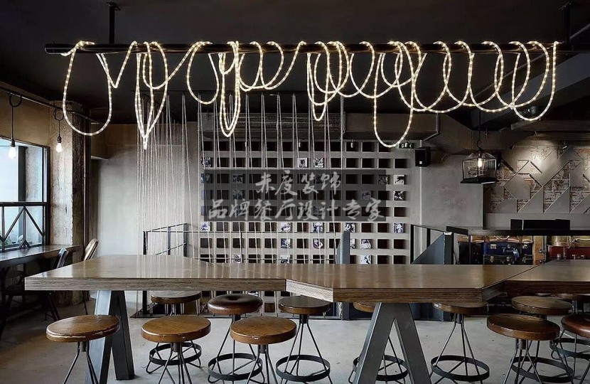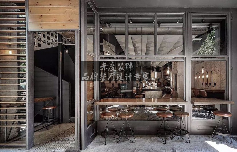 另外,设计师在工业风主题餐厅设计中运用了金属材料,金属是种强韧又耐久的材料,从工业风餐厅设计风格革 命开始以后人类的生活中就不断的出现金属制的生活用品。不过金属风格过为冷调,可将金属与木做混搭,既能保留家中温度又不失粗犷感。而其中椅子则是比较容易也是选择比较多的家具。