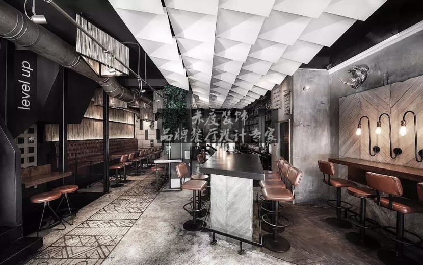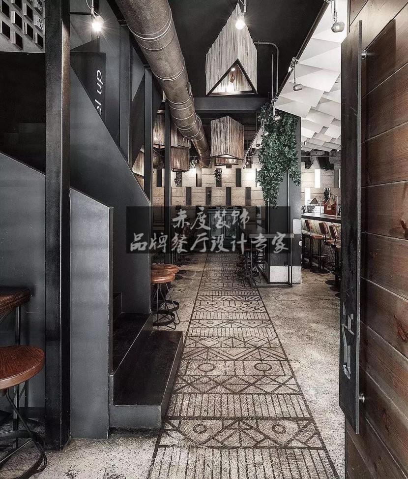 设计师在整个环境之中给我们打造了一家有格调,并且充满了野性的主题餐厅设计氛围。在餐厅装修的风格上的色调运用了流行的黑白灰色系十分适合工业风。黑色神秘冷酷,白色优雅轻盈,两者混搭交错又可以创造出更多层次的变化;在搭配室内装潢与家具的颜色时候,选用纯粹的黑白灰色系,可以让餐厅氛围更有工业风主题餐厅设计风格的感觉。