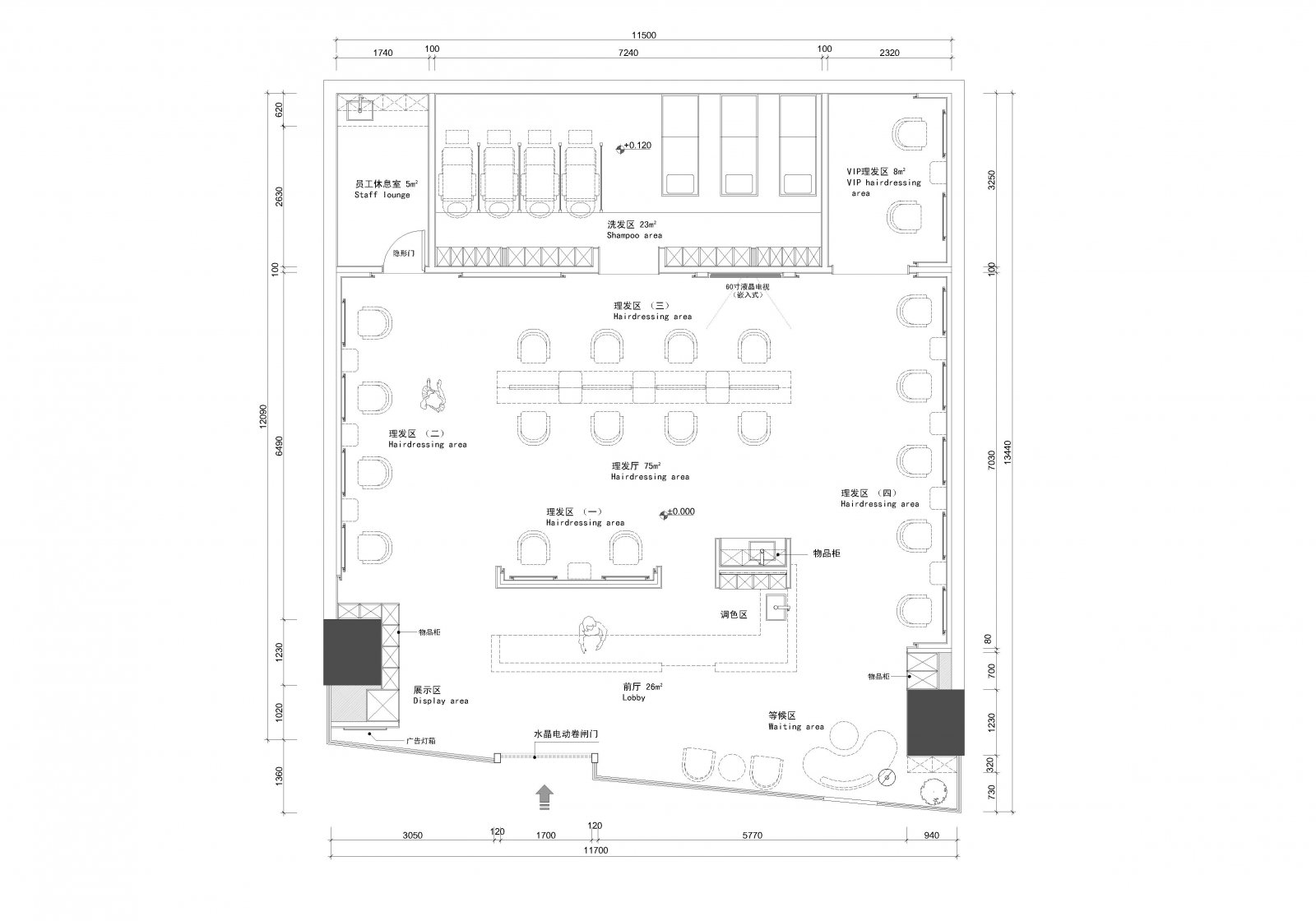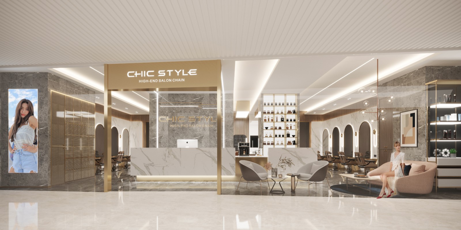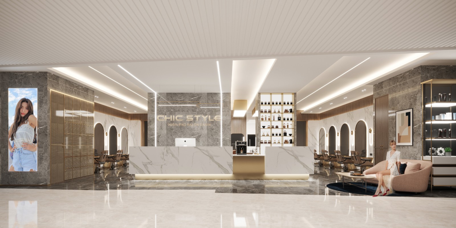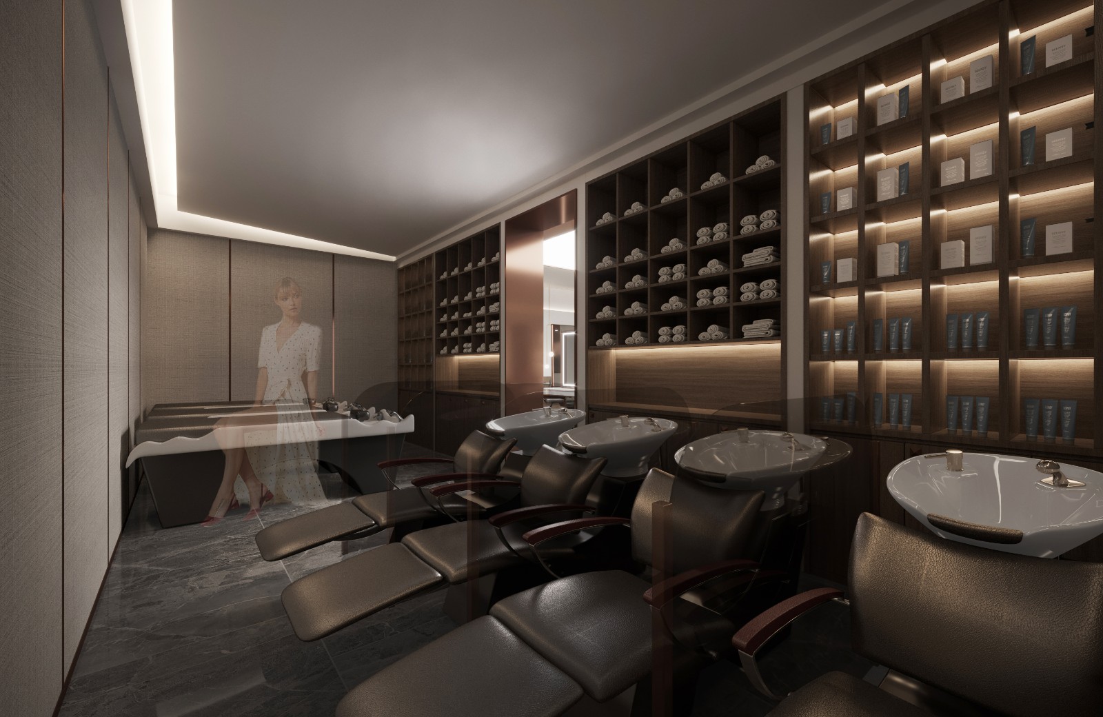 设计公司 | Design Company : Pro.S布舍设计 设计总监 | Design Director : 黄梓铖 Henry Wong 主案设计 | Master case design : 金涛 参与设计 | Involved in the design : 金涛 谢辉 项目类型 | Project Type : 美发沙龙 项目地址 | Project address: 中国 广州 项目面积 | Project Area : 160㎡ 主要材质 | Main Material : 木饰面、大理石、拉丝黄铜不锈钢、亮面烤漆板、夹丝玻璃 联系电话 | 13560440388 ![]() ![]() ![]() 钦慕之至,点石成金。 如今,共享经济变得越来越规范化, 并且衍生出了各种不同的工作方式, 拥有自己的店面也不再是必然的需求。 ![]() ![]() 对于以自由身份工作的造型师来说, 这种工作方式能够带来许多好处。 门头设计采用大面积玻璃, 将Chi style衍生而来的线条造型贯穿全案, 全尺度的落地玻璃门窗, 打破了空间中的距离感, 无意间拉近了某种互动感, 也为整体视觉感受注入了几丝轻盈透亮的气息。 ![]() ![]() ![]() ![]() 弧形大理石背景墙成为焦点, 像河流般流淌于天际。 独特的造型通过参数化设计实现, 模拟出圆滑的抽象形态。 ​