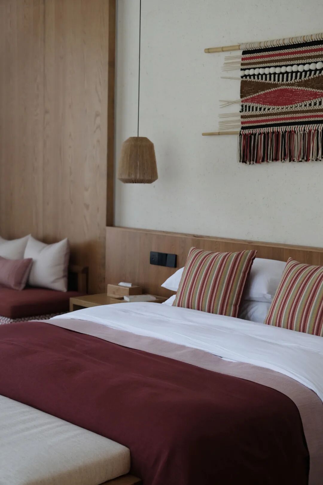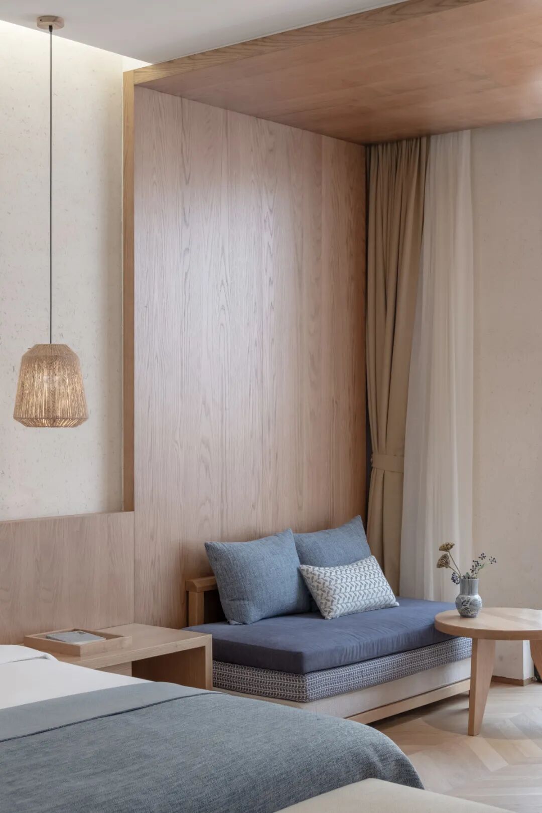 人闲桂花落,夜静春山空。月出惊山鸟,时鸣春涧中。王维喜欢写山,云雾缭绕,山色如画的景色就仿佛尘世的烦恼飘不到这里,远远望去,是一片寂静、温暖、与辽远。穿过蜿蜒的乡间小道,经过层叠交错的茶田、漫山遍野的樱花,「花间堂」便坐落于葱郁与空灵的九华山,虽不是王维隐居的终南山,却透着平易近人的暖意。 建筑外立面-九华山陌上花间堂·雾涧 「九华山·雾涧」的软装设计也依此融合了自然、在地文化、手艺等元素试图打造山林之间的休闲、温暖的度假体验。我们希望通过把握家具的尺度,使用传统的自然材料,并忠于材料本身特点和质感进行设计,留住手艺的同时也舒适惬意。 大堂吧-九华山陌上花间堂·雾涧 大堂吧-九华山陌上花间堂·雾涧 源于自然,归于自然 在本次项目中 软装结合各个地块的自然资源打造了四种不同的主题。 主题概念方案-九华山陌上花间堂·雾涧 “戏曲红”表达着原生于青阳的青阳戏曲服,活力动人、心照不宣。 大堂吧-九华山陌上花间堂·雾涧 大堂吧细节图-九华山陌上花间堂·雾涧 客房-九华山陌上花间堂·雾涧 “西湖蓝”的空间与窗外翠绿的竹林交相辉映,宁静禅意,却波光粼粼; 客房-九华山陌上花间堂·雾涧 客房-九华山陌上花间堂·雾涧 “樱花粉”透露着阳光从三月的樱花树中投射的光影; 客房-九华山陌上花间堂·雾涧 “藤黄”的灵感来自最踏实和温暖的土地与奇石; 客房-九华山陌上花间堂·雾涧 在本次项目中,材质、颜色、元素皆缺一不可地营造着整体的空间氛围。除了手工布艺的运用,色彩搭配也是其设计的亮点,分别从印染、提花等工艺打造着空间的手工质感与自然的氛围,配合质朴的家具纹理能随时让入住的客人感受到花间堂的人文气质。 客房-九华山陌上花间堂·雾涧 客房细节图-九华山陌上花间堂·雾涧 选择柔和的配色方案之外,同一空间的颜色搭配更倾向采用同类色而不是撞色的搭配手法,希望入住的客人可以在空间中感受到度假的静谧,将更多的注意力聚焦在自然景观。沙发采用同色系、不同花纹的三层软垫能极致地让客人感受山里间的柔软之意。 客房细节图-九华山陌上花间堂·雾涧 空间的材质选择,皆以木材、石头、编织为主,不掺和一点矫饰,和谐地溶入周围无边无际的绿意中。客房中的植物瓶插均取自山里最为普通的植物,随着四季更替,将属于山野的气息锁定于这方寸之间。取材于山林,归于山林。 客房细节图-九华山陌上花间堂·雾涧 客房细节图-九华山陌上花间堂·雾涧 留住手艺的温度 手工艺的家具和空间打造贯穿于项目的设计,我们不仅希望能通过单纯的装饰元素来做空间的点缀,同时期待这个住宿空间能成为一扇关于青阳文化的窗户,客人在居住的能沉浸式地感受非标的在地文化。 家具细节图-九华山陌上花间堂·雾涧 客房细节图-九华山陌上花间堂·雾涧 手艺是青阳百姓传承的文化,他们和他们的祖辈取法于自然,用树皮、藤条、篠竹等天赐之物编织布匹、打造工具、维持生活。 大堂吧-九华山陌上花间堂·雾涧 「九华山·雾涧」的家具制作,选择了与当地的一家从1983 年开始运作的老家具厂合作。建厂之初,家具厂的老板和师傅们由于坚持手工打造家具而没有选择迅速扩张,却能通过厂内悬挂的奖牌想象彼时的辉煌。 家具厂-九华山陌上花间堂·雾涧 家具厂-九华山陌上花间堂·雾涧 师傅们虽不擅长电脑绘图,我们无法通过精确的图纸来沟通家具的细节,但他们对于手艺的执着与热爱,让拥有习性的材料得到最大限度的发挥。家具部件之间的拼接、边角的打磨,正是通过手艺人的工作,让家具看上去拥有性格,与众不同的缘由所在。 大堂吧-九华山陌上花间堂·雾涧 细细触摸,能感受到每一件家具精益求精的制作和家具所传递的温度。同时,家具的尺度设计尽力保证坐卧的舒适感,较宽的进深为客人提供了可睡可坐可卧的度假之旅。 客房细节图-九华山陌上花间堂·雾涧 手工编织与印染在客房的各个角落皆可寻觅,即便是无意中留下的线尾亦别有韵味。悬挂于床头上方的装饰画通过绳与绳之间的缠绕制成,时间随着编织的纹路而流逝,汇聚、成型、扭曲、时而断裂、再次相遇。 客房细节图-九华山陌上花间堂·雾涧 客房细节图-九华山陌上花间堂·雾涧 沙发抱枕的面料相比于机械化的批量生产,选择由时间和心意编制而成的手艺制作,让它们拥有性格,带着复古的浪漫情怀,同时流露着质朴、真诚的情感,不断传递着艺人坚守工艺的人情和温度。 客房细节图-九华山陌上花间堂·雾涧 大堂吧细节图-九华山陌上花间堂·雾涧 山间氧气,花间食外。 三餐四季,雾涧待你。 设计时间:2019年09月软装设计单位:The One 则问设计 硬装设计:琚辰(上海)创意设计有限公司 酒店管理公司:花间堂酒店管理有限公司 家具供应商:秋田木业 图片版权:The One 则问设计、花间堂 则问设计是一家专注文旅项目的室内设计公司,则问的目标是通过自己的身体力行,改变民宿行业风格单一、跟风抄袭、网红化的现状。我们对于项目是抱着打造作品的心态,需要用心打磨。我们对于业主是需要在深入沟通、了解、理解的前提下尽力帮助实现他们的诉求。我们对于自我是希望可以在项目中不断学习、进步、突破自己。我们对于工作是追求高效、快乐、和成就感。 |