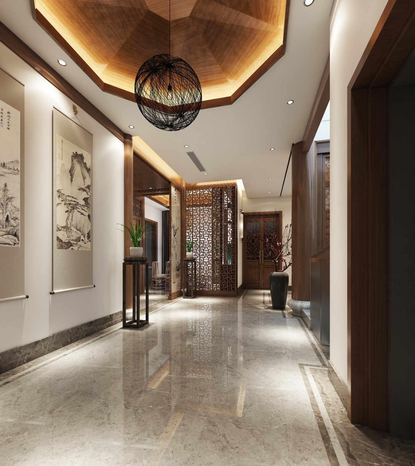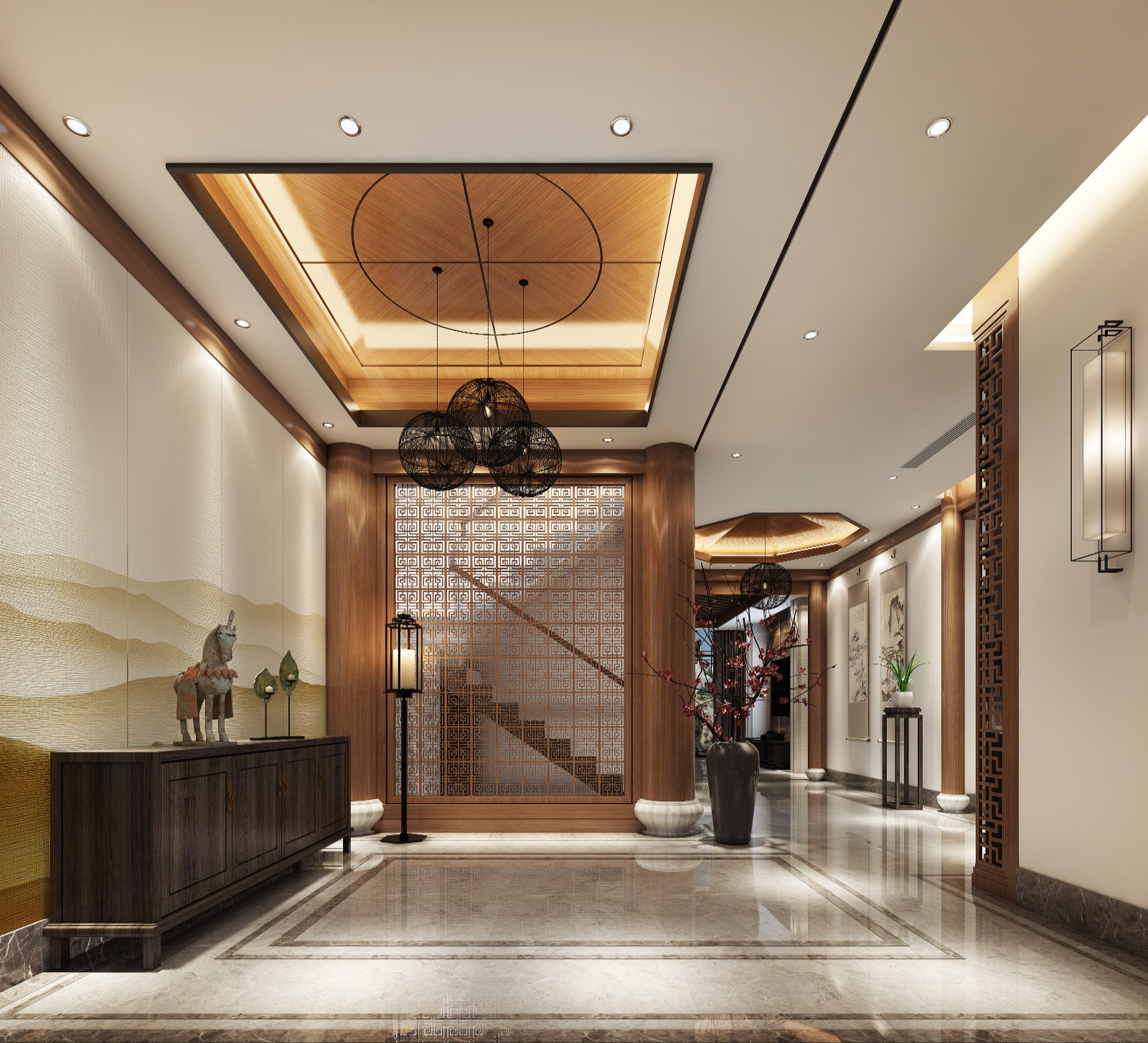 本帖最后由 安定空间设计 于 2020-11-6 16:58 编辑 ANDING ![]() ▲情景交融的境界,被赋予了高雅的气质与韵味,这是点与面的精巧之美,更有人文的精神之美。 The state of blending feelings and scenes is endowed with elegant temperament and charm, which is the exquisite beauty of points and surfaces and the beauty of humanistic spirit. ![]() ▲东方禅意的境界,讲究中式泼墨山水式的交融与画境,在情景中赋予人格美、品德美和精神美。 Eastern Zen State, pay attention to the Chinese splash ink landscape-style blend and painting, in the scene to give the beauty of personality, moral and spiritual beauty. ![]() ▲镂空的墙面处理,来源于对崇尚自然、师法自然的理解。在借景之中的意境表达,象征着“清逸起于浮世,纷扰止于内心”。 Hollow-out wall surface processing, comes from to advocate the nature, the natural understanding. The expression of artistic conception in the borrowed scenery symbolizes the pure and easy begins in the floating world, and the disturbance ends in the heart . ![]() ▲古朴的雕花、写意的字画、镂空的吊灯、古色古香的家居,绿意盎然的兰花等传统特色符号,直接铺陈出浓浓的中式韵味。 Simple carving, freehand calligraphy and painting, Hollow Chandeliers, antique furniture, green orchids and other traditional symbols, directly out of a strong Chinese flavor. ![]() ▲梅花香自清风来,从褐色到每一个装饰物,处处都营造出禅意的韵味。白色的墙面与深棕色的家具形成明显的对比,一把休闲椅,一本书,工作之余,就是与友品茶饮酒,畅谈人生的悠然时光。 Plum fragrance from the breeze, from Brown to each decoration, everywhere to create a zen flavor. White walls and dark brown furniture form a clear contrast, a lounge chair, a book, after work, is to drink tea with friends, talk about the leisure time of life. ![]() ▲既隔又合的空间处理,在光线的充盈下,宁静深远,从容而淡雅。 Both separated and combined space processing, filling in the light, quiet far-reaching, calm and elegant. ![]() ▲东方美学的意蕴充盈着整个空间,这是需要东方浑厚文化积淀的同时,又有空与静的憬悟才可得的。 The implication of the Oriental aesthetics is full of the whole space, which needs the profound cultural accumulation of the Orient as well as the realization of emptiness and quietness. ![]() ▲整个卧室注重功能的诉求,更加强调色彩、材质、尺寸、细节及实品给居住者的感官体验。 The whole bedroom focus on the function of the demand, more emphasis on color, material, size, details and real products to the sensory experience of the residents. 项目地点 | 福州 项目名称 | 融汇山水 项目面积 | 700㎡ 设计团队 | 福建安定空间设计有限公司 设计主案 | 李敏 ![]() ![]() 福建安定空间设计有限公司创立于2016年,致力于室内空间规划设计及施工,专注于高端住宅空间,商业空间、办公空间设计与施工服务。在“一切让客户安心”的理念下,用最专业的设计及服务,为客户提供最满意安心的作品。以安定空间设计研究所为管理核心和创意源泉,打造有家装、公装、软装、园林三大业务板块,为广大客户带来高品质、专业化、精细化的整装服务。 |