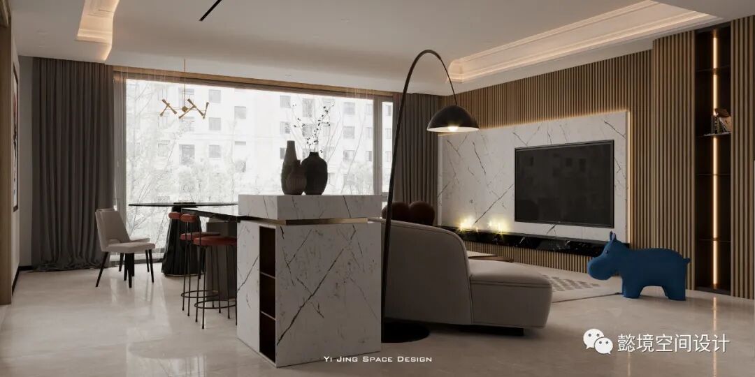 本帖最后由 梁大石 于 2020-12-4 10:38 编辑 始 - 项目地点 - 浙江,新昌麒麟府 - 设计时间 - 2020.9 - 设计师 - 梁懿 - 设计 - 懿境空间设计 -视觉表现 - 懿境空间设计 从生活中得到灵感,运用到私宅设计当中。 本次项目是精装修改造, 在比较有限的预算内,解决客户遇到的问题。 加入自己的一些设计手法, 从而达到一个比较满意的设计体验。 ▼客厅背景墙 弧度可以缓解直角带来的紧张感 大体块的分割,干净明了,格栅背面造型, 平静安定壁炉与石材的相撞,冷与热的交融,别有一番滋味 ▼客厅前后对比 vs 电视背景墙和吊顶弧度相得益彰 得益于平面布局的重新组建, 丰富了空间层次,也增高了生活趣味 ▼局部细节 休闲时光 阳光、咖啡、甜点一应俱全 家不是一成不变的,其实可以自由组合。 ▼客厅两侧视角 空间打开,拥抱美好生活 ▼餐厅 小餐厅,三四人食刚刚好 ▼全景 ▼原始布局 ▼优化布局 弊端 原设计的并排客餐厅,但间距只有5.5米,如何布局都无法同时满足客厅和餐厅的间距要求。 优化 利用客餐厅的宽度,客餐厅相互错开,可同时达到理想的间距,还可增设了吧台。 ​ 终 |