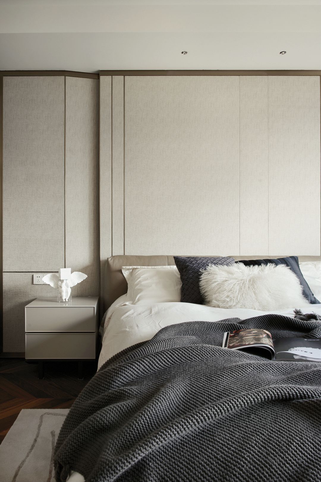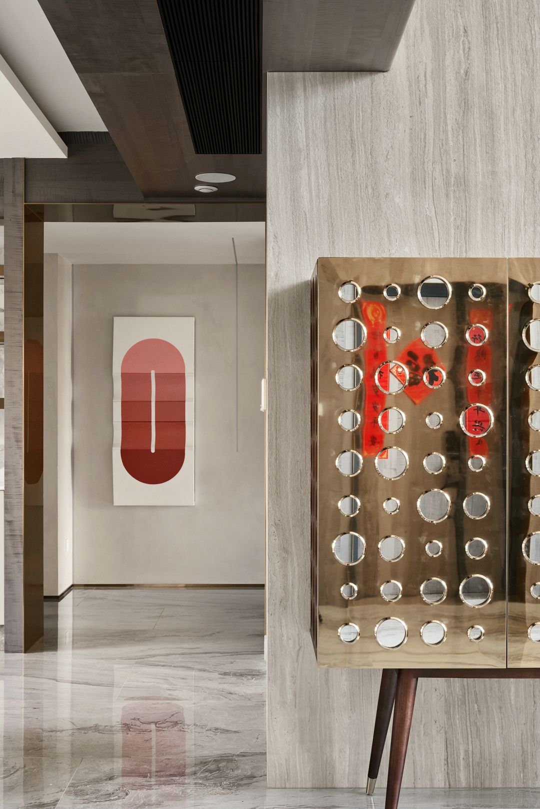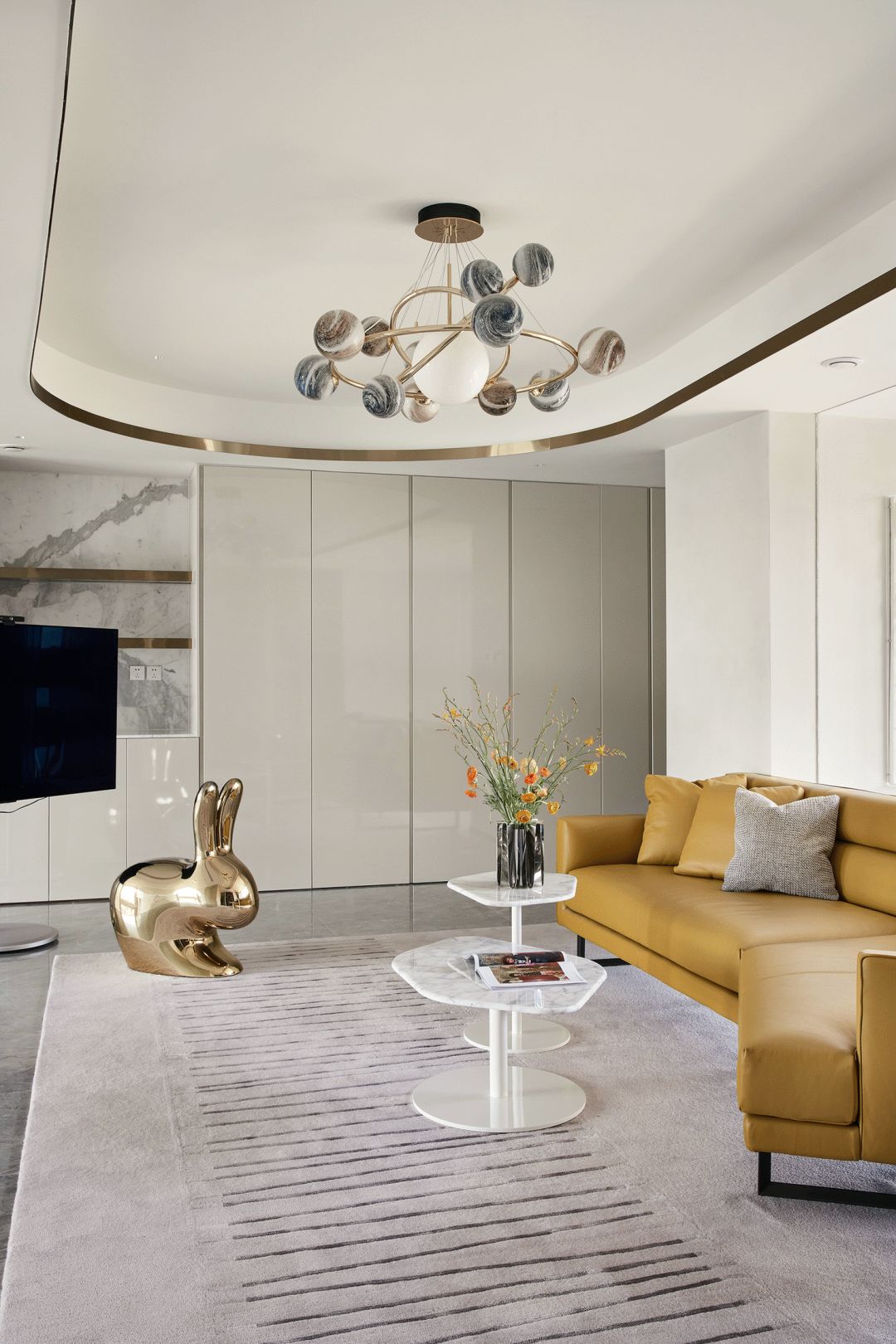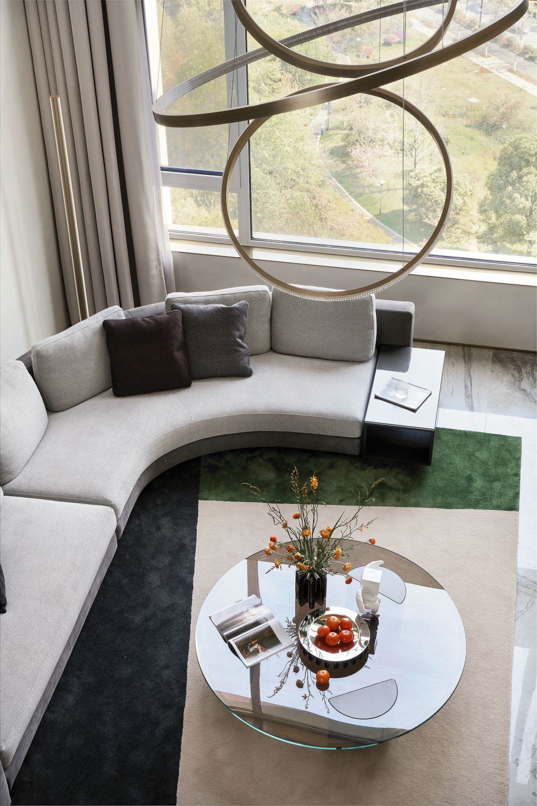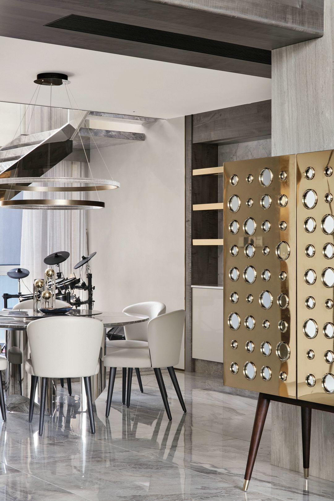 每一个全案,都是私人订制 Customized for each project. 项目地址 / 浙江 · 杭州 Location / Hangzhou · Zhejiang 项目类别 / 全案委托 Project Types /Total Solution 毕业时间 / 2021 . 04 Finish Time / April. 2021 设计团队 / 力设计 Design Team / Li Design 摄影 / 林峰 Photographer / Lin Feng 户型图 Plan 一楼平面布置图 二楼平面布置图 关于设计:注重空间的高品质与设计感,将优雅高贵的质感结合灰色木饰面及金色艺术装饰,巧妙的呈现出奢华格调与简洁大方的视觉享受,同时带来了繁复含蓄的感官体验。 客厅 Living room 效果图 实景 客厅背景的金色艺术装饰宛如大自然水滴聚集落下那一瞬间形成的美妙天然状态,与这套位于钱塘江畔数百米外的一线江边景色相互呼应; 餐厅 Dining room 效果图 实景 玄关进门映入眼帘的就是这个金光璀璨的餐边柜,搭配上走廊尽头的跳色装饰画,赋予餐厅活跃气氛;黑色大理石餐桌搭配白色皮料餐椅,经典但又高级的搭配,加上华丽吊灯的渲染,营造出餐厅温馨奢华的用餐氛围。 一楼主卧室 Bedroom 主卧作为和客厅一样拥有同样视野、同样尺度的观景台,每块岩板与奢石都经过设计师严格甄选,充分利用材质的天然纹理,与各种进口软装的搭配融合,整体氛围简洁、流畅、奢华。 二楼起居室 Living room 它摒弃了过度华丽的硬装,加入了更多温润细腻的木质元素,也加入了更多金属提高质感,但更多的是与色彩的交流,与色彩的碰撞,有与色彩的相得益彰。 二楼主卧室 Bedroom 大面积白色纹理的瓷砖交错铺贴,充满整个卫生间墙面地面,给人简洁大气的视觉体验,在角落中,搭配上乱中有序的装饰画和颜色鲜艳的花束使整个空间既干净又有焕然一新的感觉。 二楼儿童房 Bedroom 象征着青春与生命的绿色被设计师很完美的运用到极致,它浓郁但又不失生机,在软装里虽然是小众一族,但却是浓墨重彩的一抹特色。 二楼次卧 Bedroom 有立体肌理的白色墙纸搭配不规则床头柜使得整个次卧充满活力。 有感: 最好的空间是这样的:我们居住其中,却感觉不到自然在哪里终了,艺术在哪里开始。 ——林语堂 |