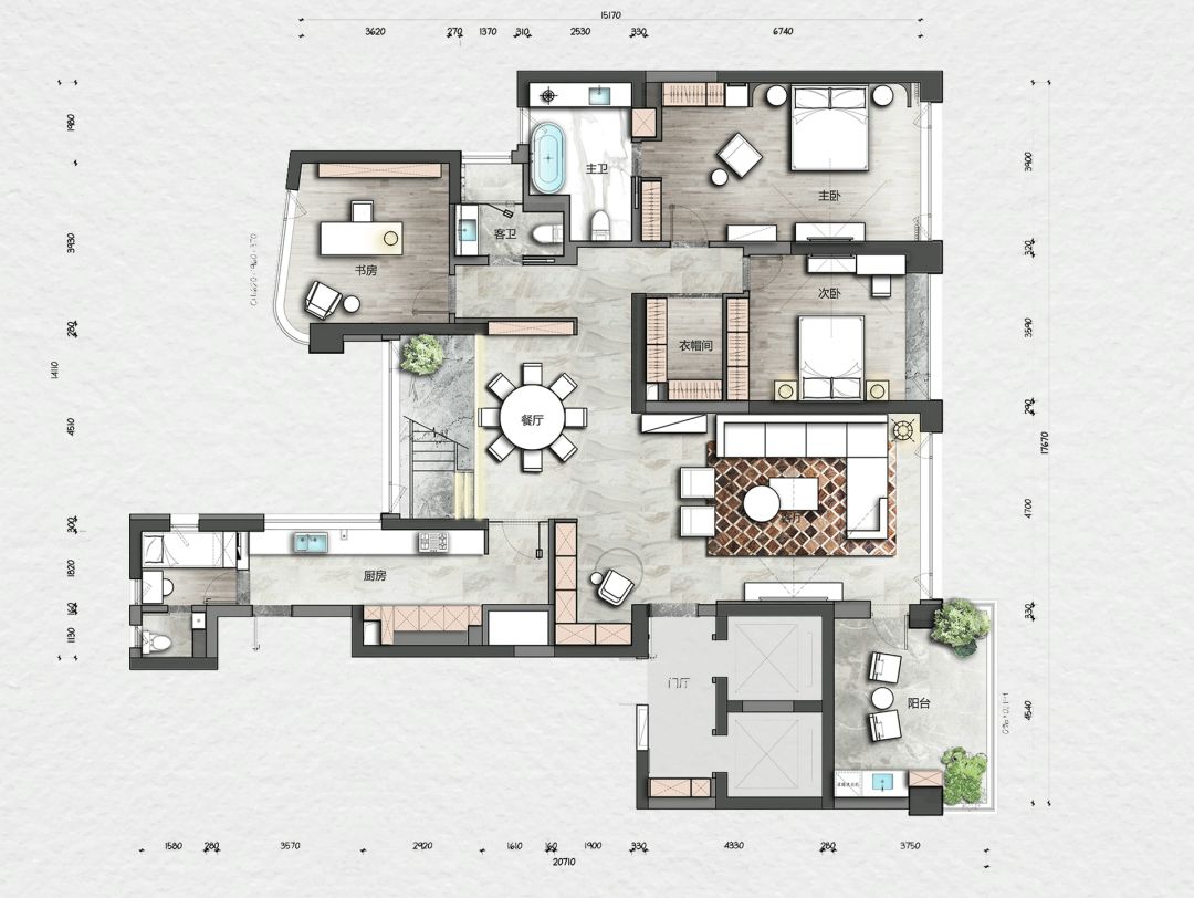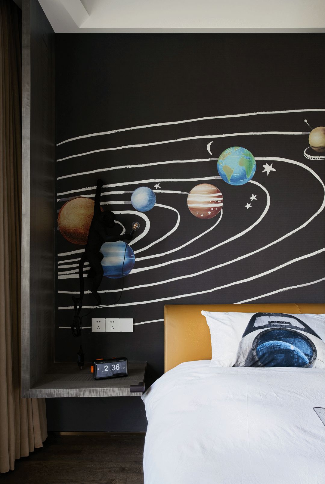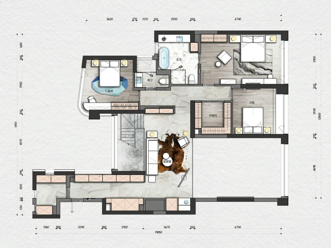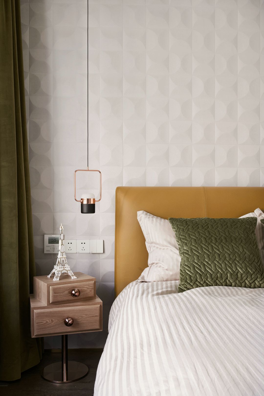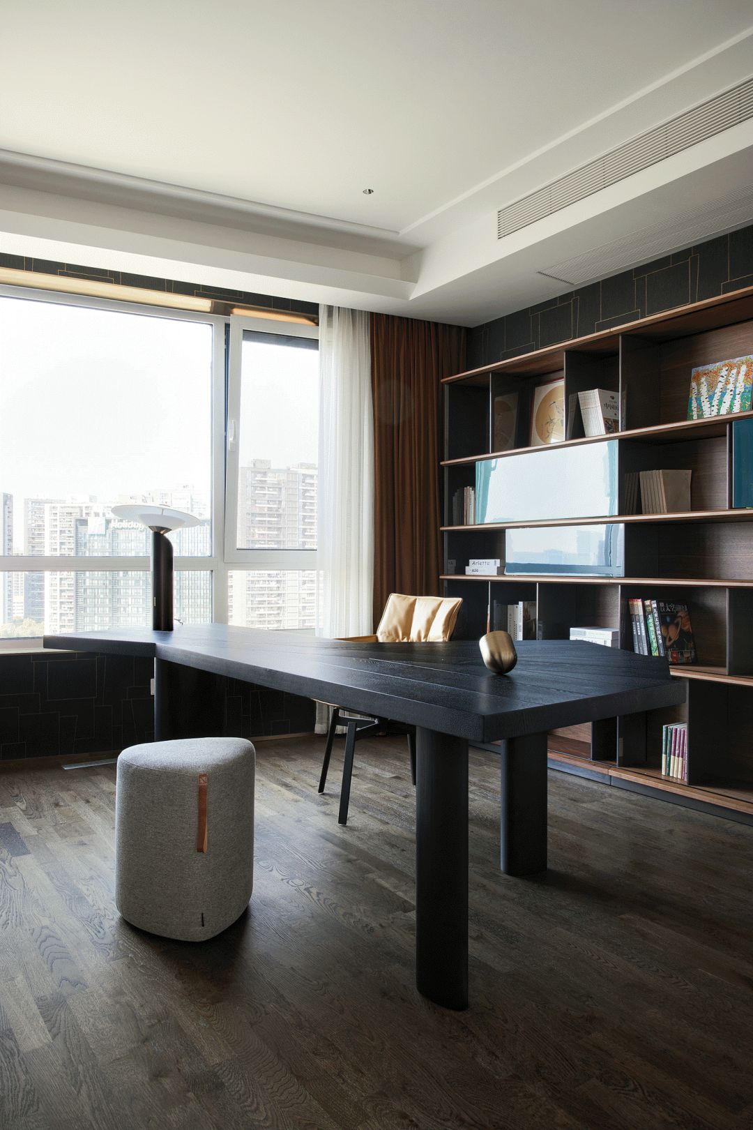 每一个全案,都是私人订制 Customized for each project. 项目地址 / 浙江 · 杭州 Location / Hangzhou · Zhejiang 项目类别 / 全案委托 Project Types /Total Solution 毕业时间 / 2021 . 04 Finish Time / April. 2021 设计团队 / 力设计 Design Team / Li Design 摄影 / 林峰 Photographer / Lin Feng 户型图 Plan 一楼平面布置图 二楼平面布置图 关于设计:注重空间的高品质与设计感,将优雅高贵的质感结合灰色木饰面及金色艺术装饰,巧妙的呈现出奢华格调与简洁大方的视觉享受,同时带来了繁复含蓄的感官体验。 客厅 Living room 效果图 实景 客厅背景的金色艺术装饰宛如大自然水滴聚集落下那一瞬间形成的美妙天然状态,与这套位于钱塘江畔数百米外的一线江边景色相互呼应; 餐厅 Dining room 效果图 实景 玄关进门映入眼帘的就是这个金光璀璨的餐边柜,搭配上走廊尽头的跳色装饰画,赋予餐厅活跃气氛;黑色大理石餐桌搭配白色皮料餐椅,经典但又高级的搭配,加上华丽吊灯的渲染,营造出餐厅温馨奢华的用餐氛围。 一楼主卧室 Bedroom 主卧作为和客厅一样拥有同样视野、同样尺度的观景台,每块岩板与奢石都经过设计师严格甄选,充分利用材质的天然纹理,与各种进口软装的搭配融合,整体氛围简洁、流畅、奢华。 二楼起居室 Living room 它摒弃了过度华丽的硬装,加入了更多温润细腻的木质元素,也加入了更多金属提高质感,但更多的是与色彩的交流,与色彩的碰撞,有与色彩的相得益彰。 二楼主卧室 Bedroom 大面积白色纹理的瓷砖交错铺贴,充满整个卫生间墙面地面,给人简洁大气的视觉体验,在角落中,搭配上乱中有序的装饰画和颜色鲜艳的花束使整个空间既干净又有焕然一新的感觉。 二楼儿童房 Bedroom 象征着青春与生命的绿色被设计师很完美的运用到极致,它浓郁但又不失生机,在软装里虽然是小众一族,但却是浓墨重彩的一抹特色。 二楼次卧 Bedroom 有立体肌理的白色墙纸搭配不规则床头柜使得整个次卧充满活力。 有感: 最好的空间是这样的:我们居住其中,却感觉不到自然在哪里终了,艺术在哪里开始。 ——林语堂 |