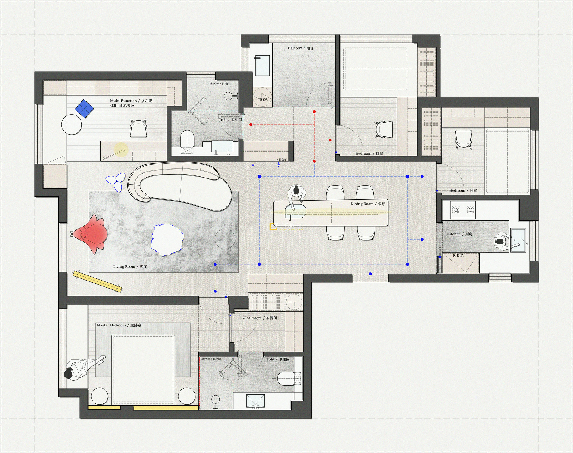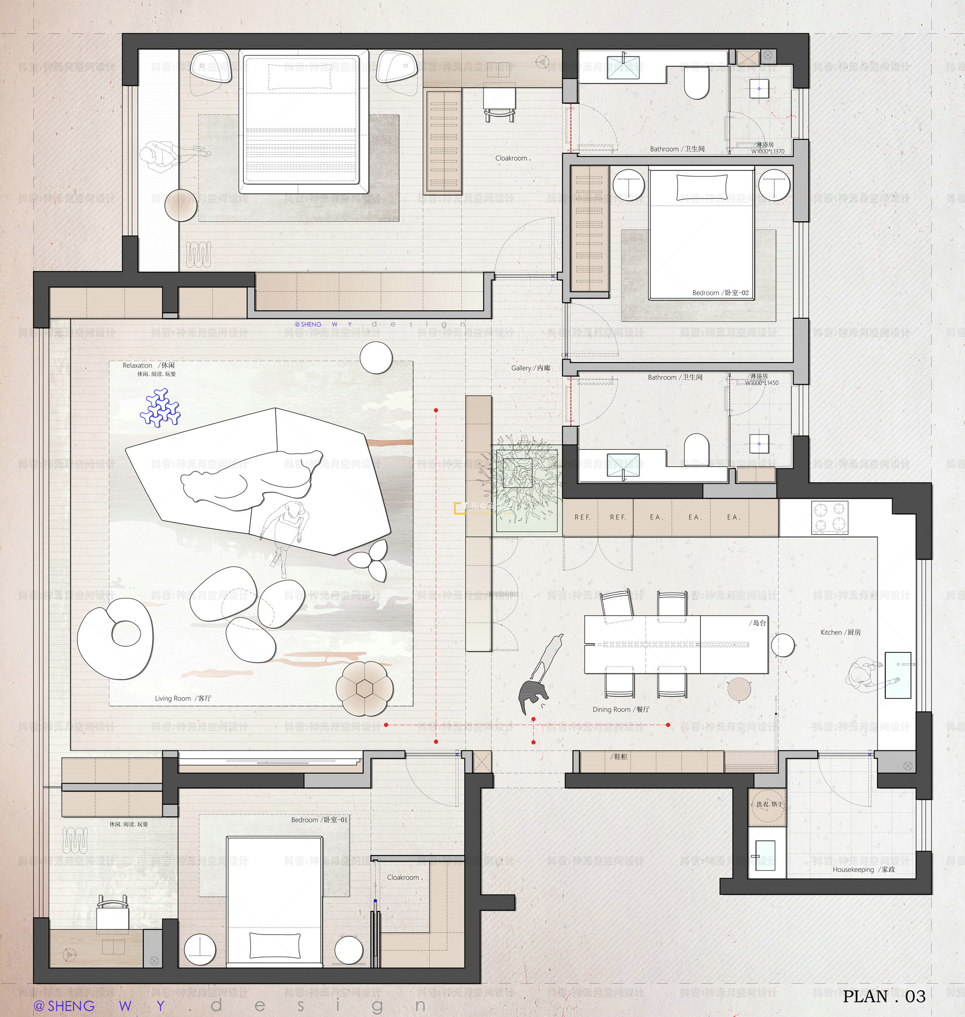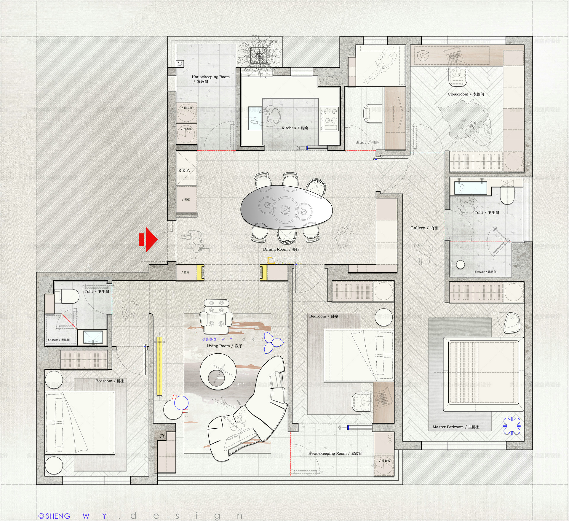 & @ D+ f. ^& m! Q* v113㎡平层3+1房【2稿方案】