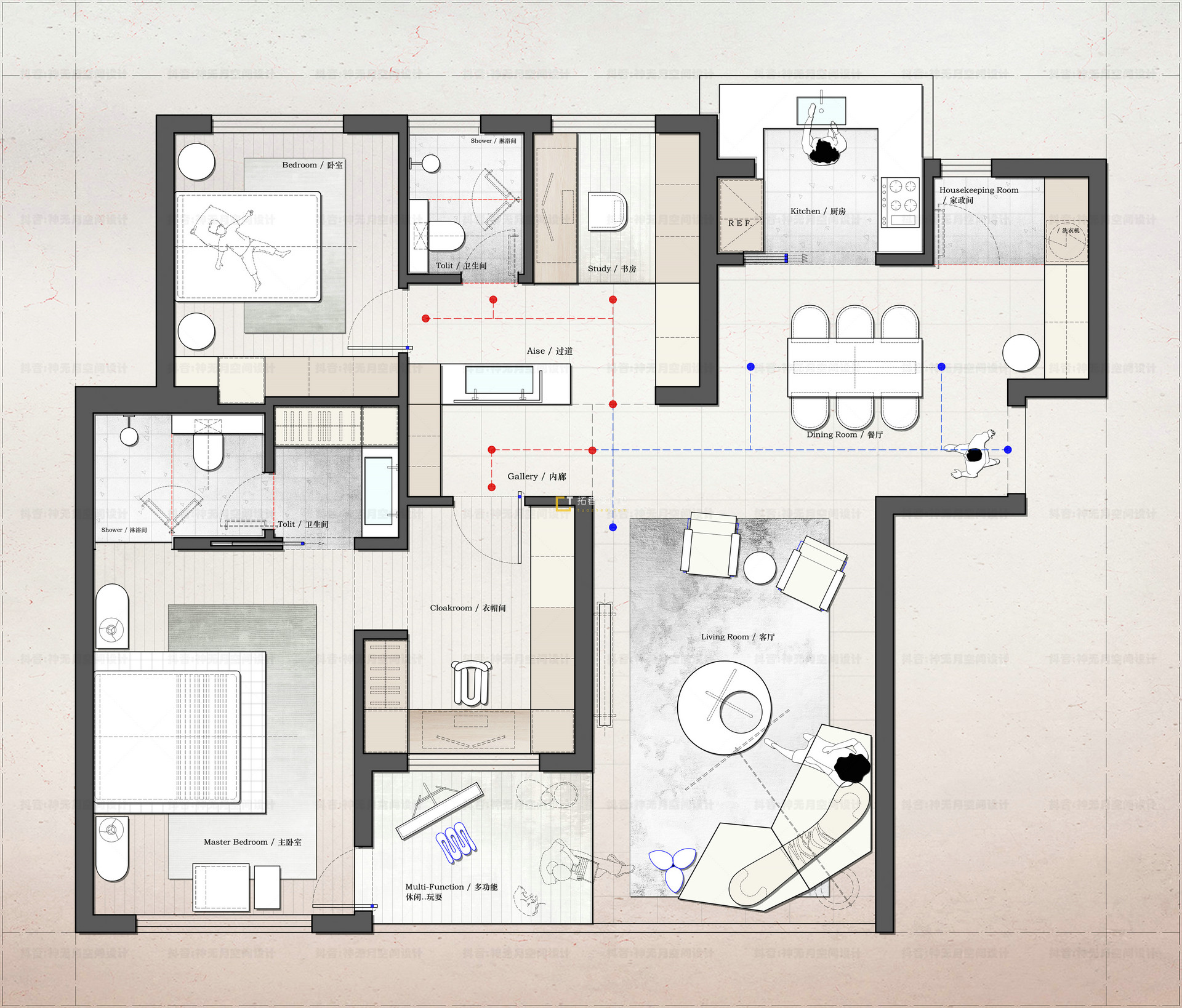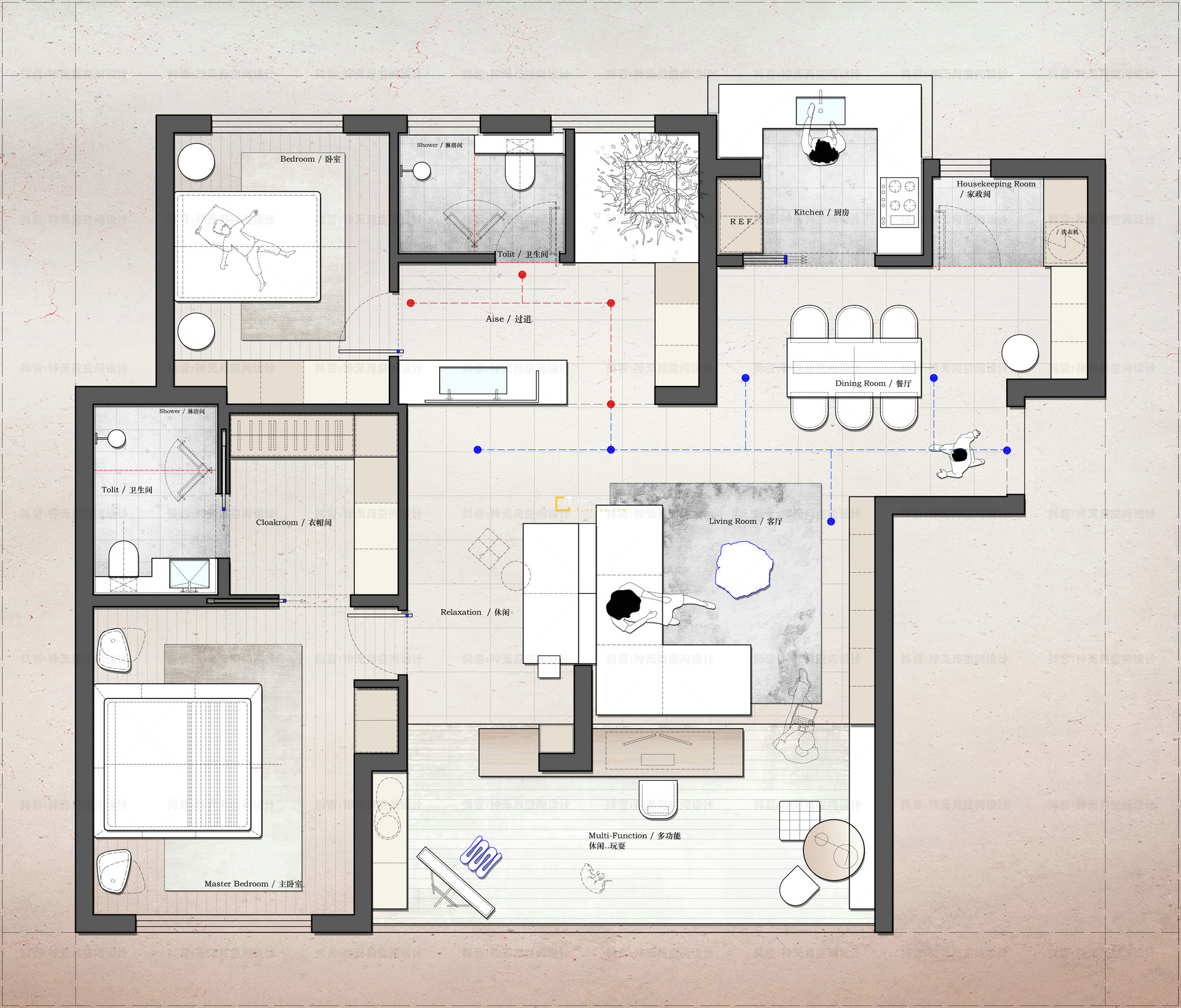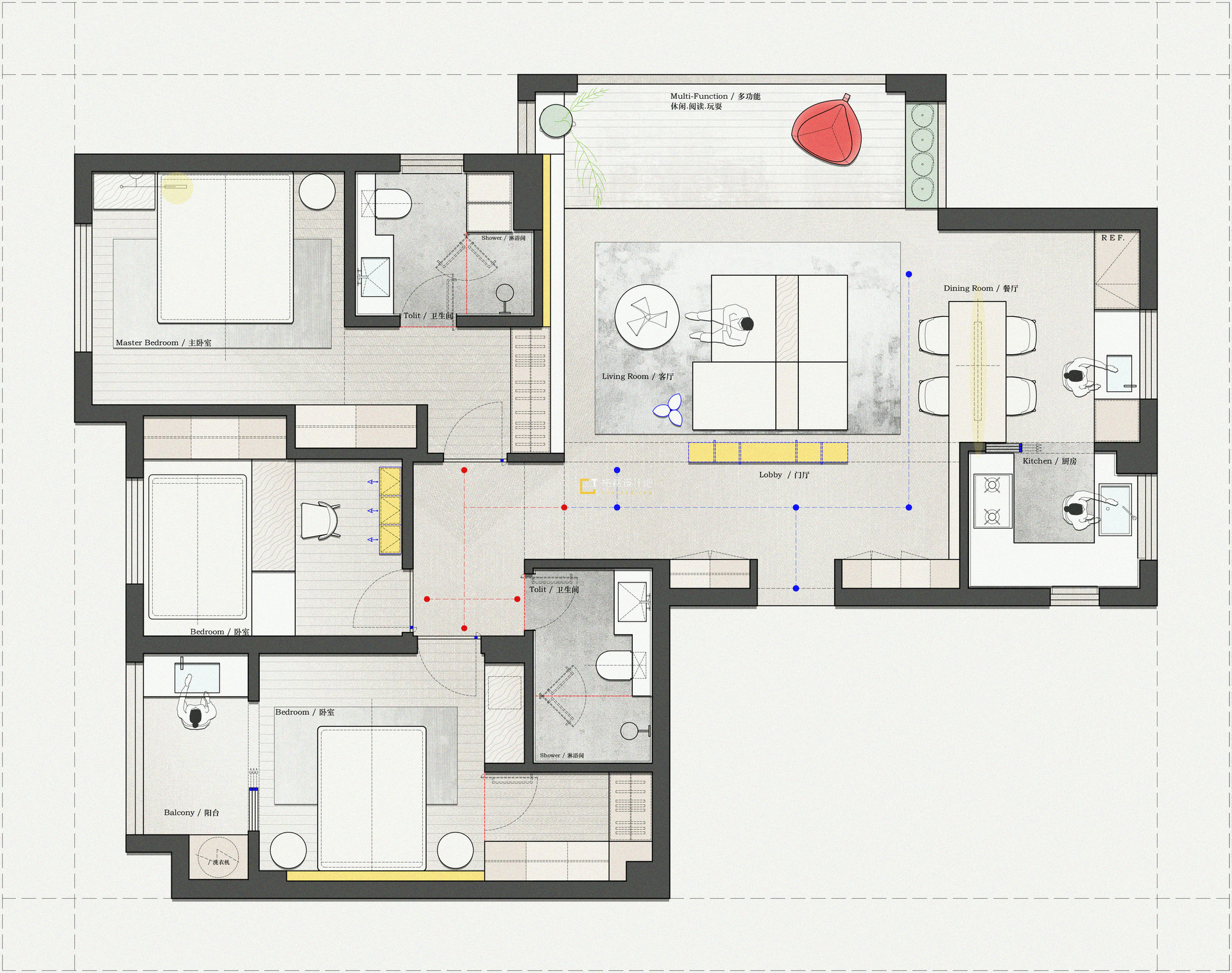 & @ D+ f. ^& m! Q* v113㎡平层3+1房【2稿方案】